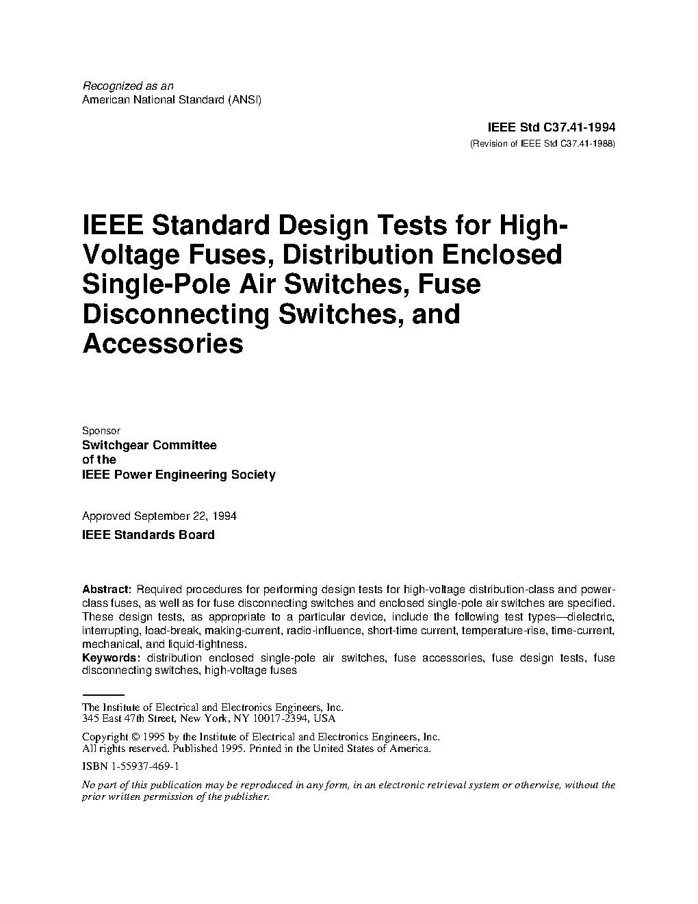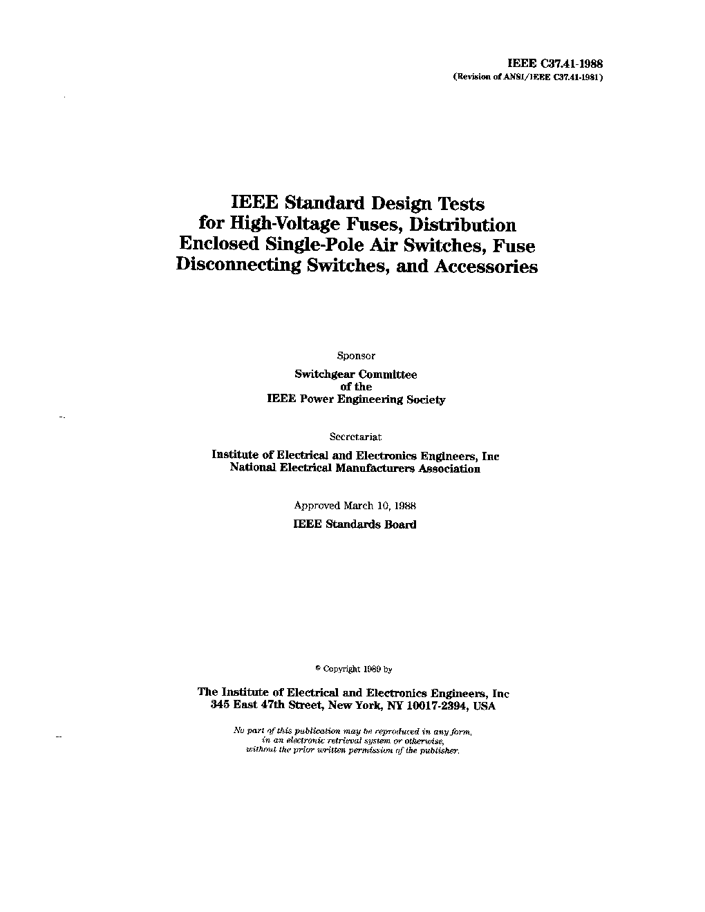 IEEE Standard Design Tests for High-Voltage Fuses, Distribution Enclosed Single-Pole Air Switches, Fuse Disconnecting Switches, and Accessories