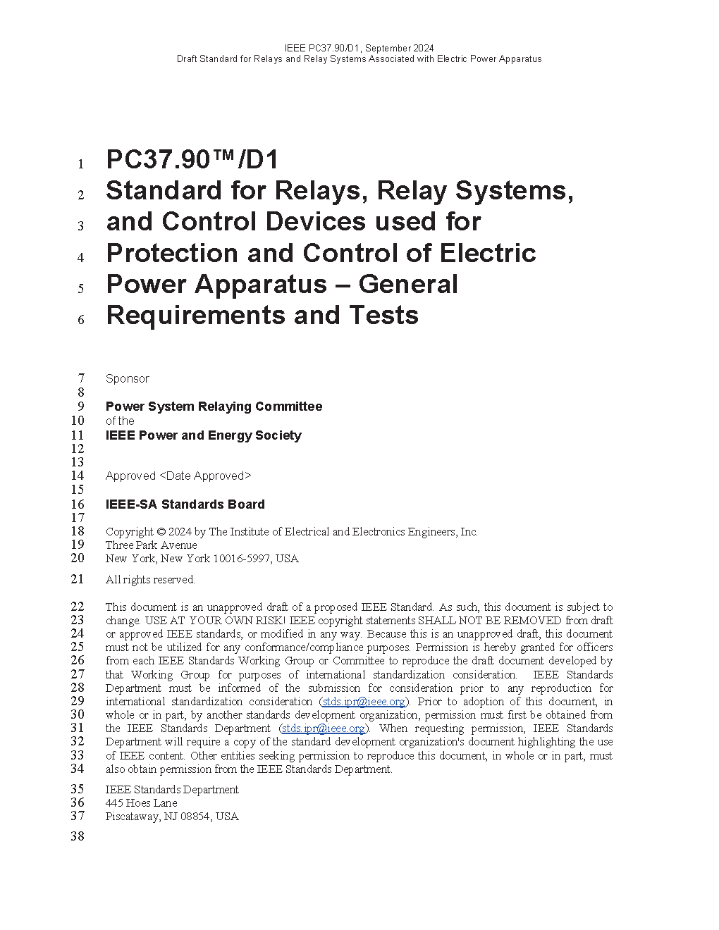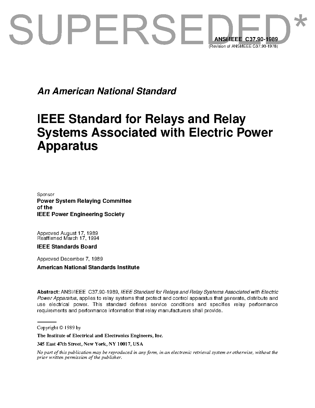 IEEE Standard for Relays and Relay Systems Associated with Electric Power Apparatus