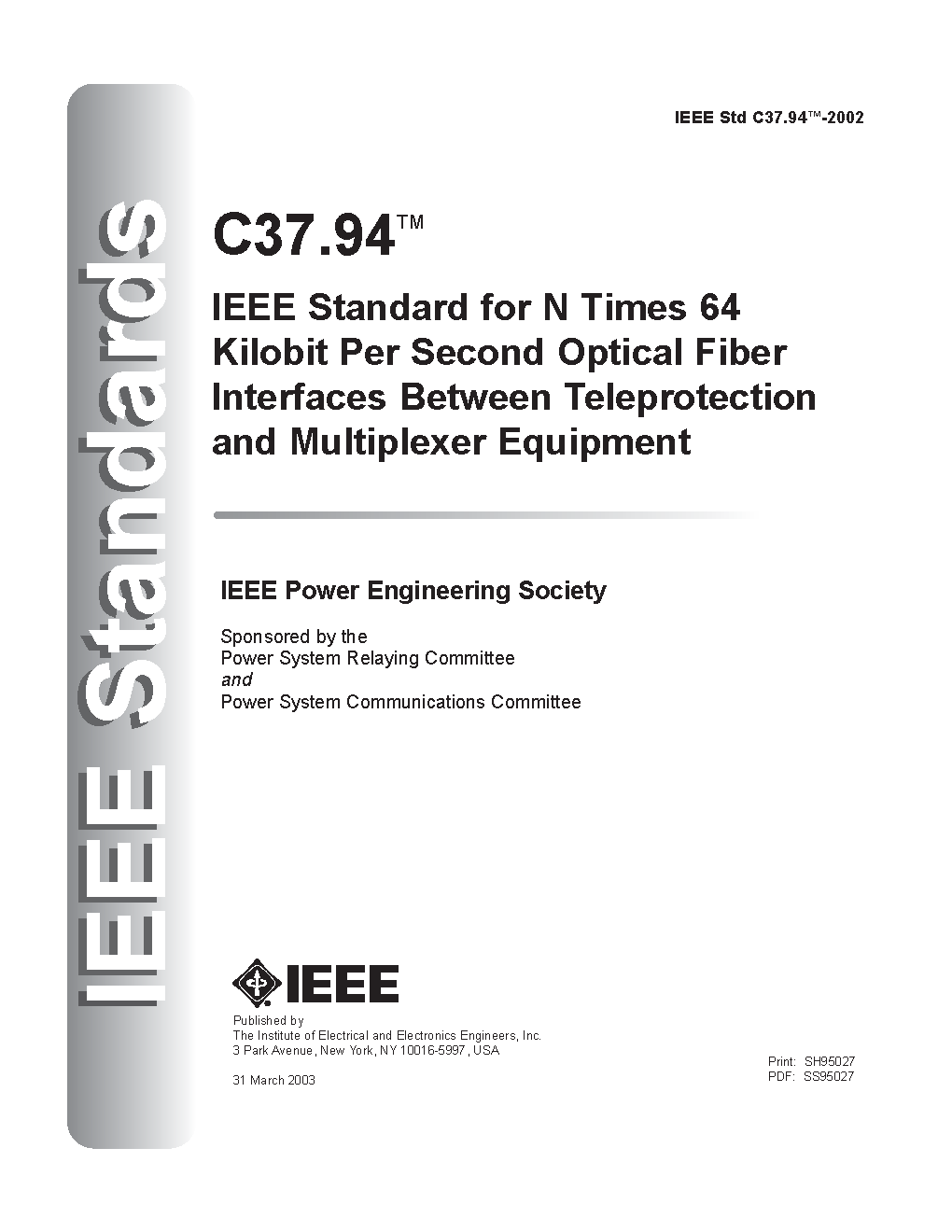This IEEE Standard is part of the C37 Family on Switchgear, Substations & Protective Relays. Project scope: This standard describes the interconnection details for N times 64 kilobit per second connections of teleprotection equipment to digital multiplexers using optical fiber. Requirements for both physical connection and the communications timing are also included. Project purpose: The purpose of this standard is to define an interconnection of different vendors' relays with different vendors' multiplex equipment, without any restriction on the ocntent of the N times 64 kilobit per second data, using up to 2 kilometer of 50 micrometer or 62.5 micrometer multimode fiber.