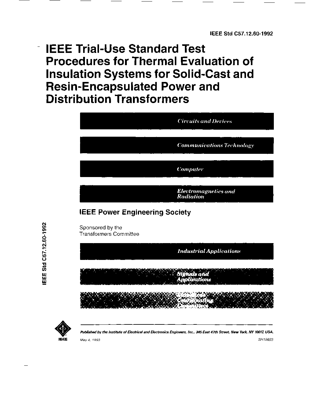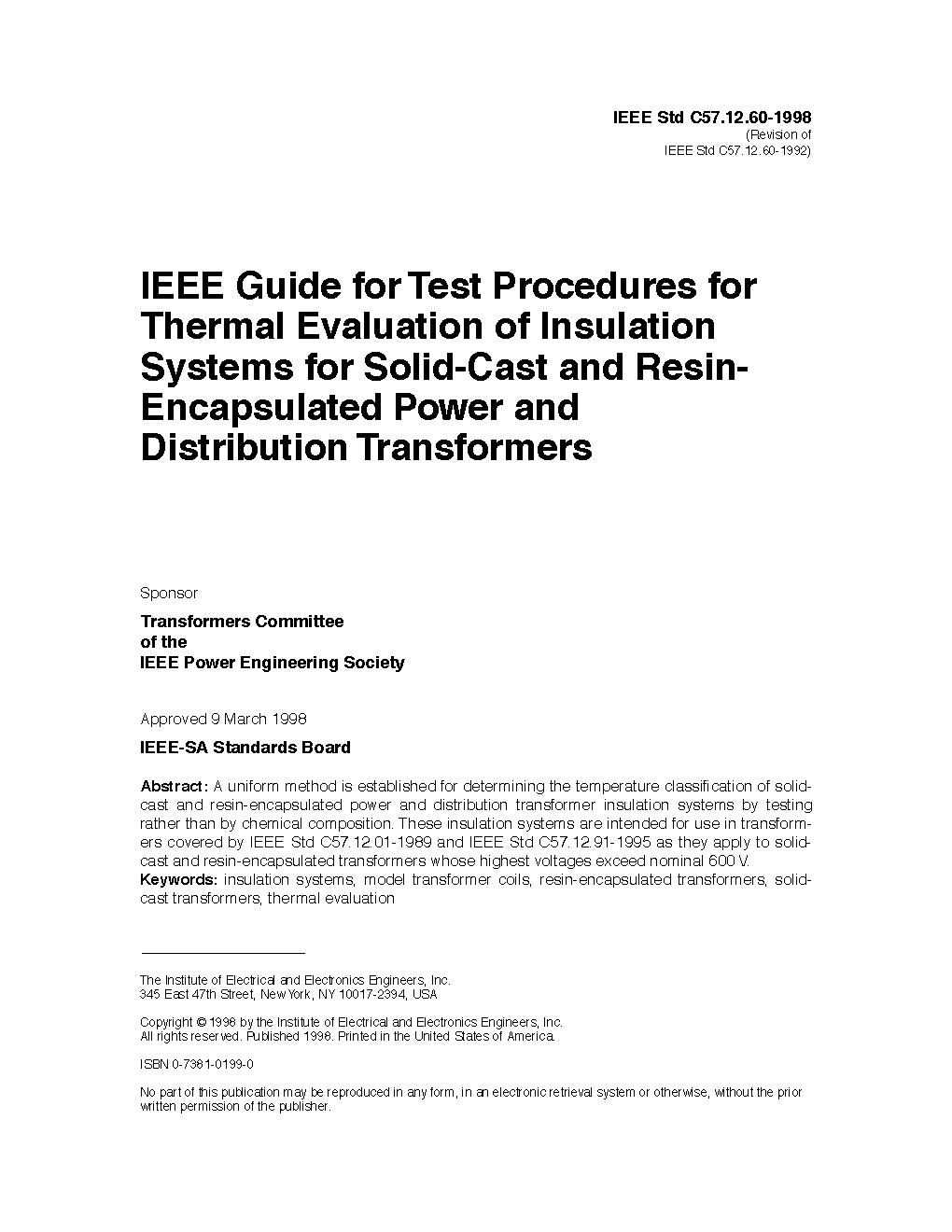 This test procedure for the thermal evaluation of insulation systems of dry-type power and distribution transformers, including both open-wound technology and solid-cast / encapsulated technology is to be used for determining the temperature classification of the insulation systems.