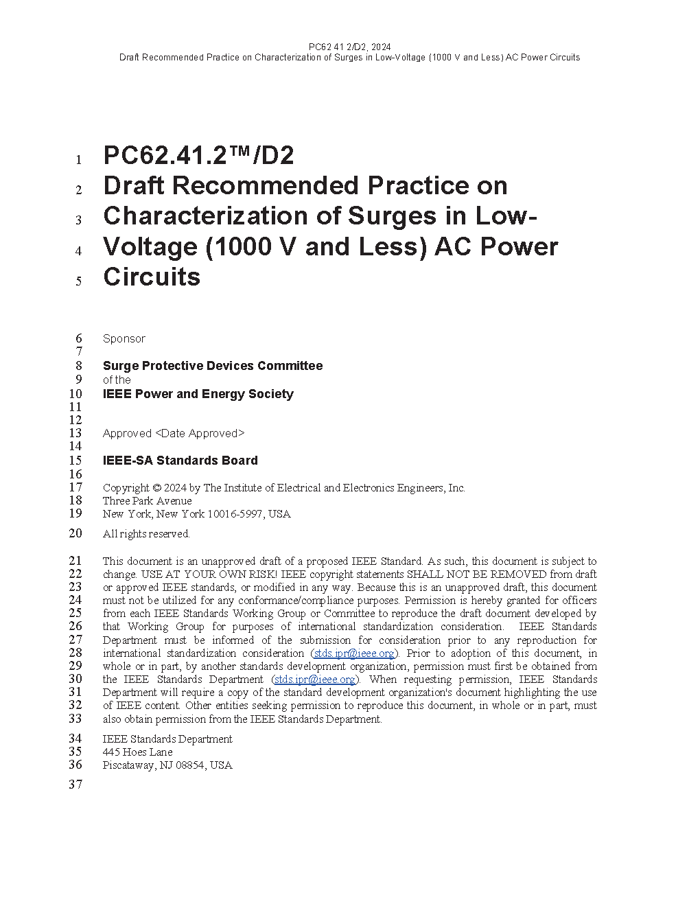 IEEE Recommended Practice on Characterization of Surges in Low-Voltage (1000 V and less) AC Power Circuits