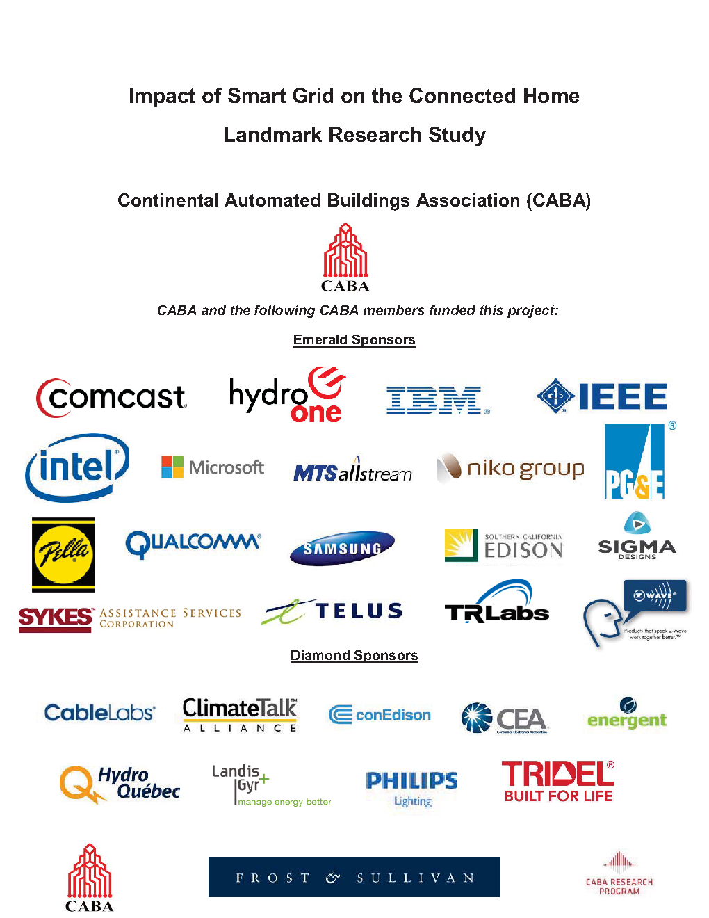 In 2012, CABA conducted the Impact of Smart Grid on Connected Homes Landmark Research study with the objective of greatly improving the understanding of residential Smart Grid development and deployment in terms of: identifying market demand and growth areas for new products; comparing competing product strategies and communication of competitors; determining product preferences for end-users; developing messaging that resonates with the target audience; defining critical success factors to expand product offerings to end-user markets; and establishing a market approach and foundation for strategic decision-making efforts.