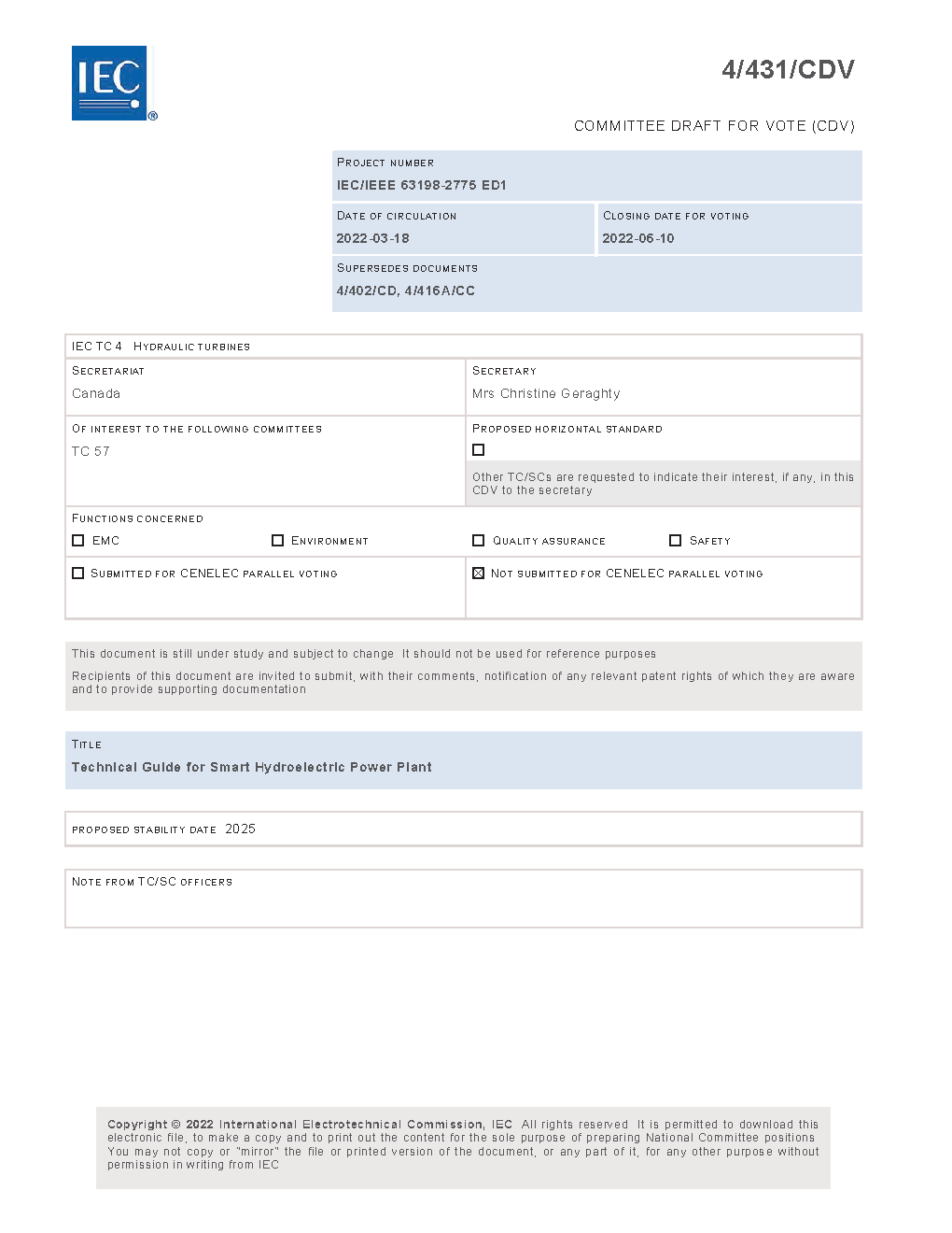 IEC/IEEE International Technical Guidelines for Smart Hydroelectric Power Plant