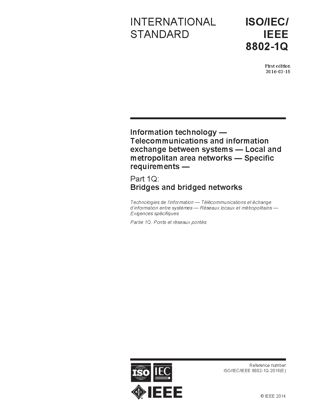 IEEE/ISO/IEC International Standard - Telecommunications and exchange between information technology systems--Requirements for local and metropolitan area networks--Part 1Q: Bridges and bridged networks
