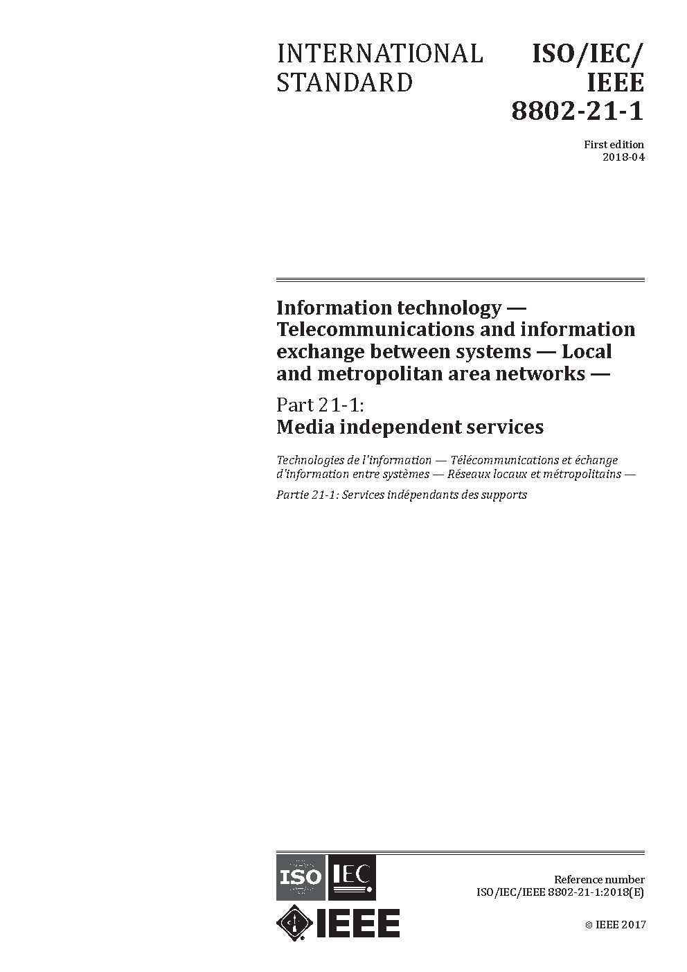 ISO/IEC/IEEE International Standard - Information technology — Telecommunications and information exchange between systems — Local and metropolitan area networks — Part 21-1: Media independent services