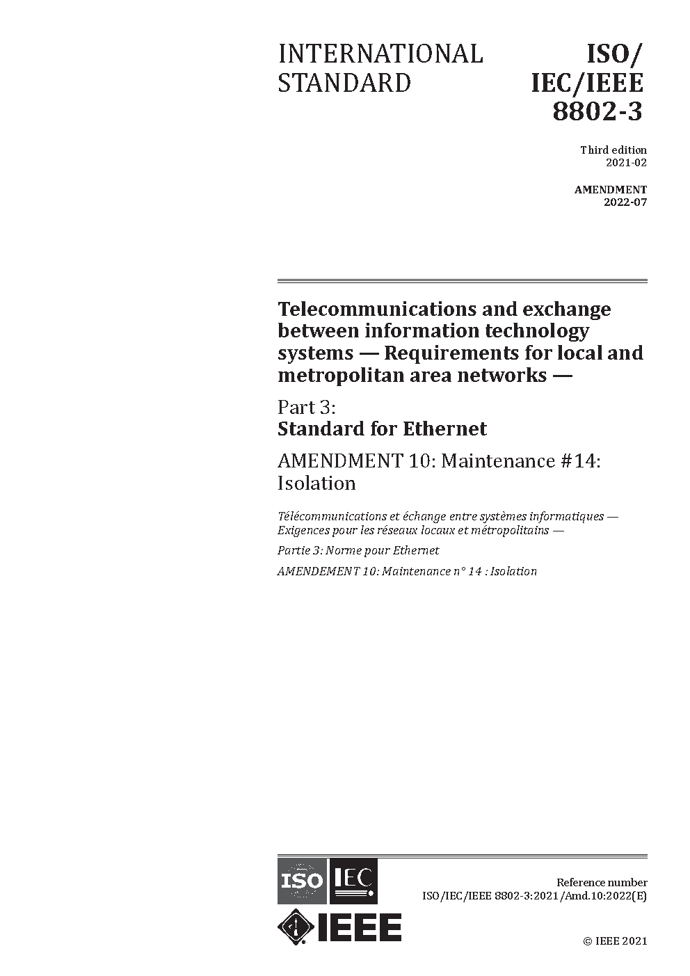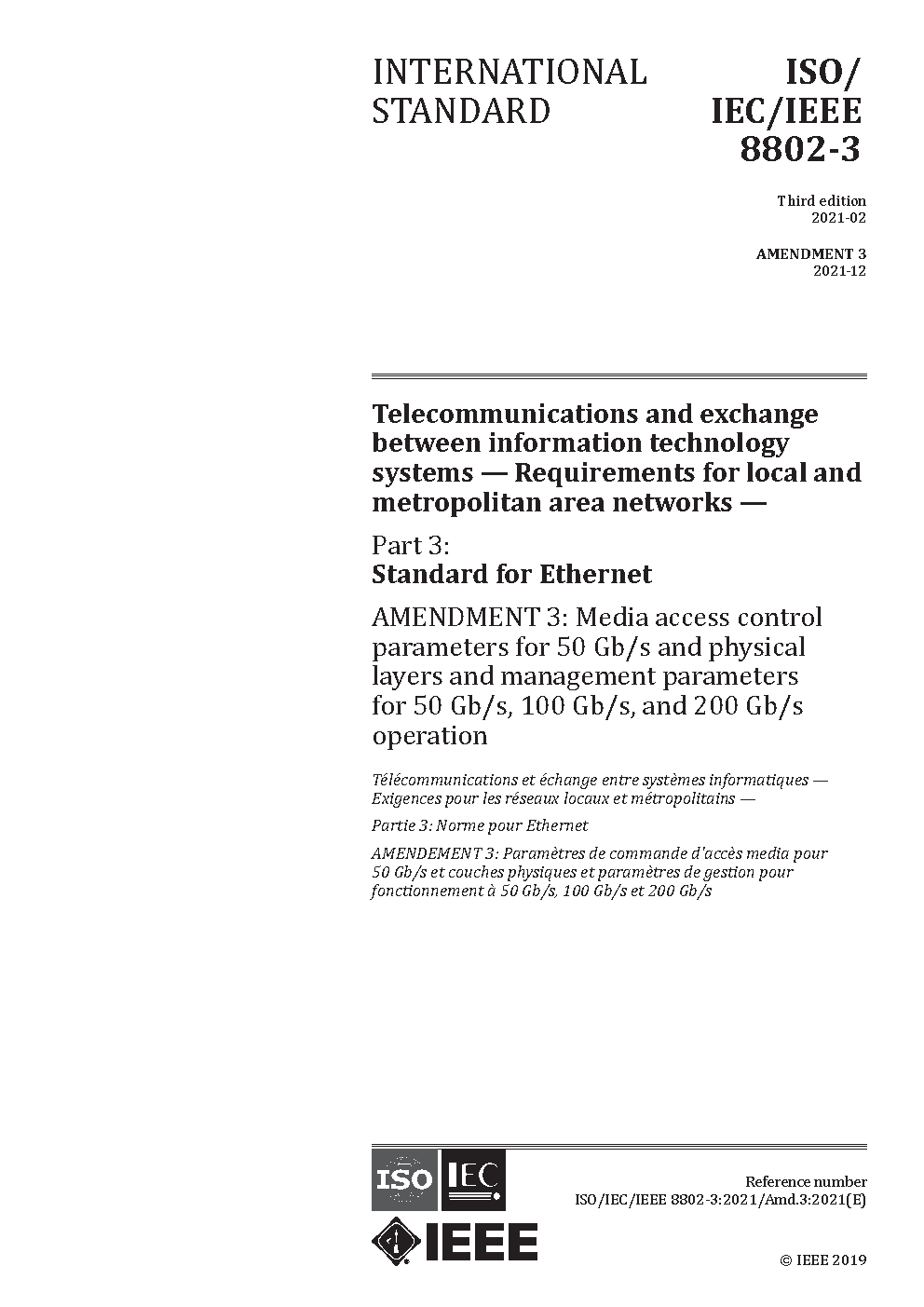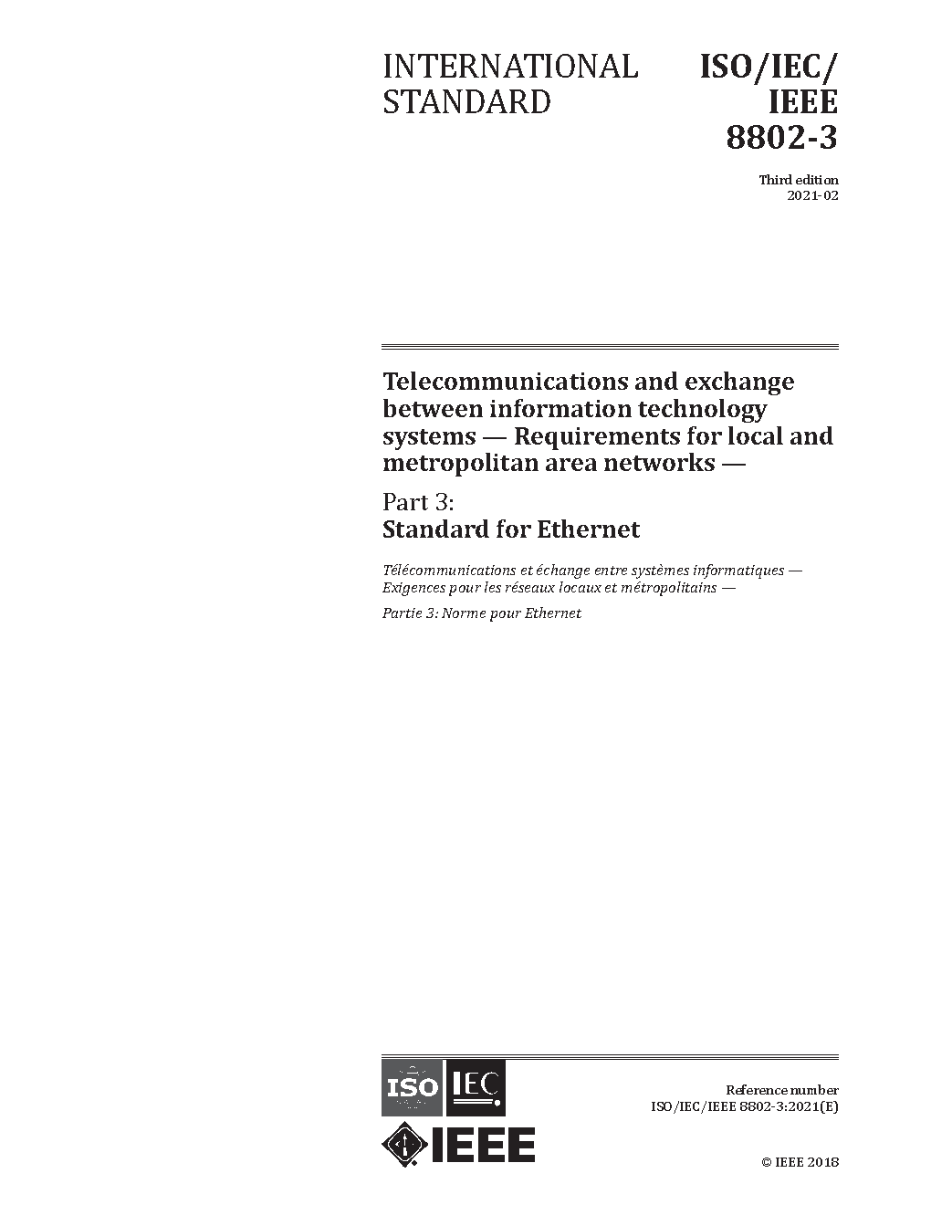 ISO/IEC/IEEE International Standard - Telecommunications and exchange between information technology systems--Requirements for local and metropolitan area networks--Part 3: Standard for Ethernet