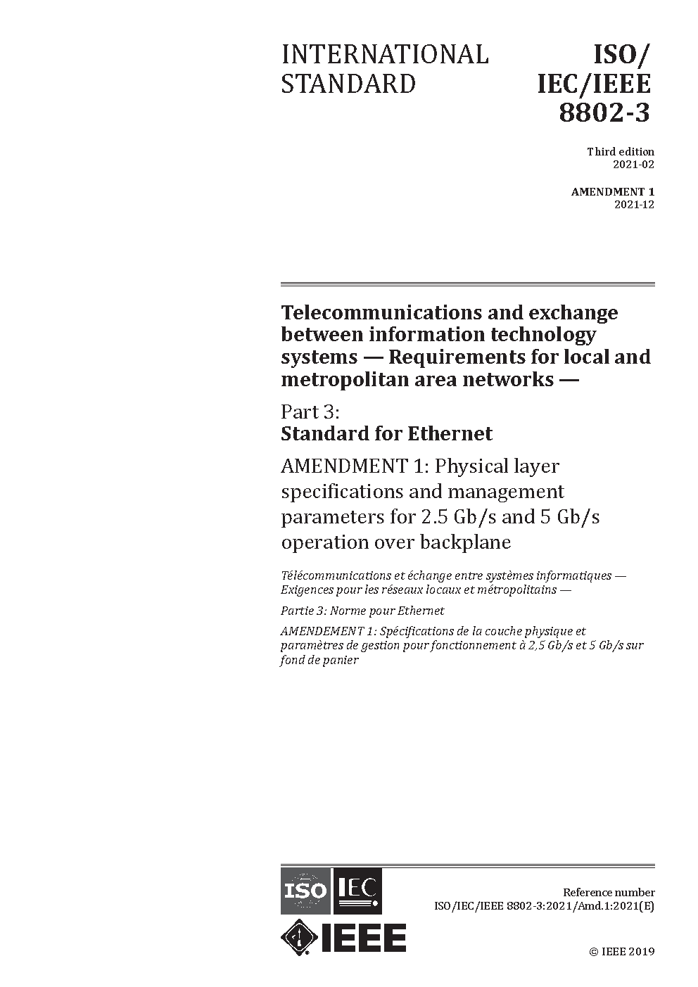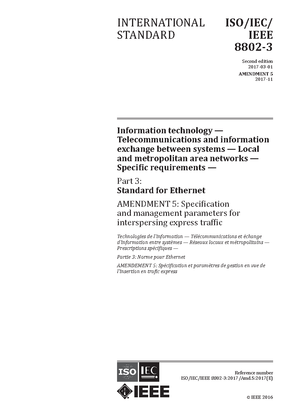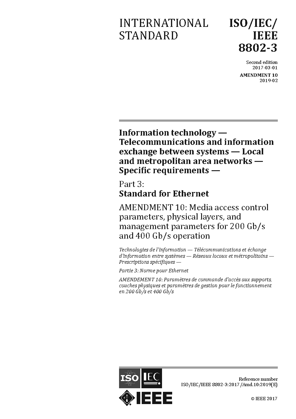 ISO/IEC/IEEE International Standard - Telecommunications and exchange between information technology systems--Requirements for local and metropolitan area networks--Part 3: Standard for Ethernet