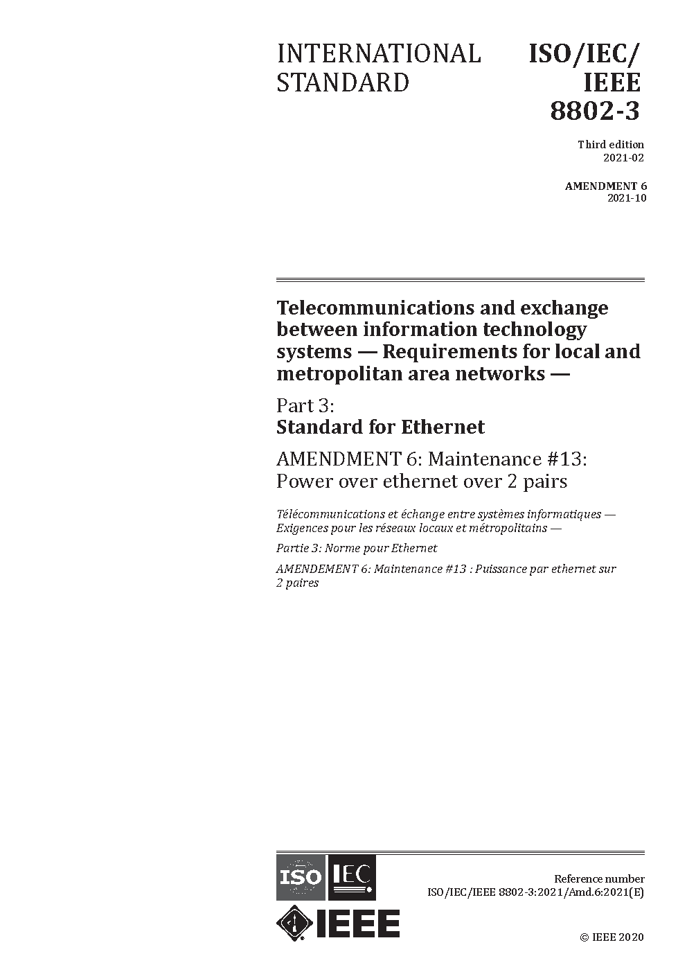 This standard defines Ethernet local area, access and metropolitan area networks. Ethernet is specified at selected speeds of operation; and uses a common media access control (MAC) specification and management information base (MIB). The Carrier Sense Multiple Access with Collision Detection (CSMA/CD) MAC protocol specifies shared medium (half duplex) operation, as well as full duplex operation. Speed specific Media Independent Interfaces (MIIs) provide an architectural and optional implementation interface to selected Physical Layer entities (PHY). The Physical Layer encodes frames for transmission and decodes received frames with the modulation specified for the speed of operation, transmission medium and supported link length. Other specified capabilities include: control and management protocols, and the provision of power over selected twisted pair PHY types.