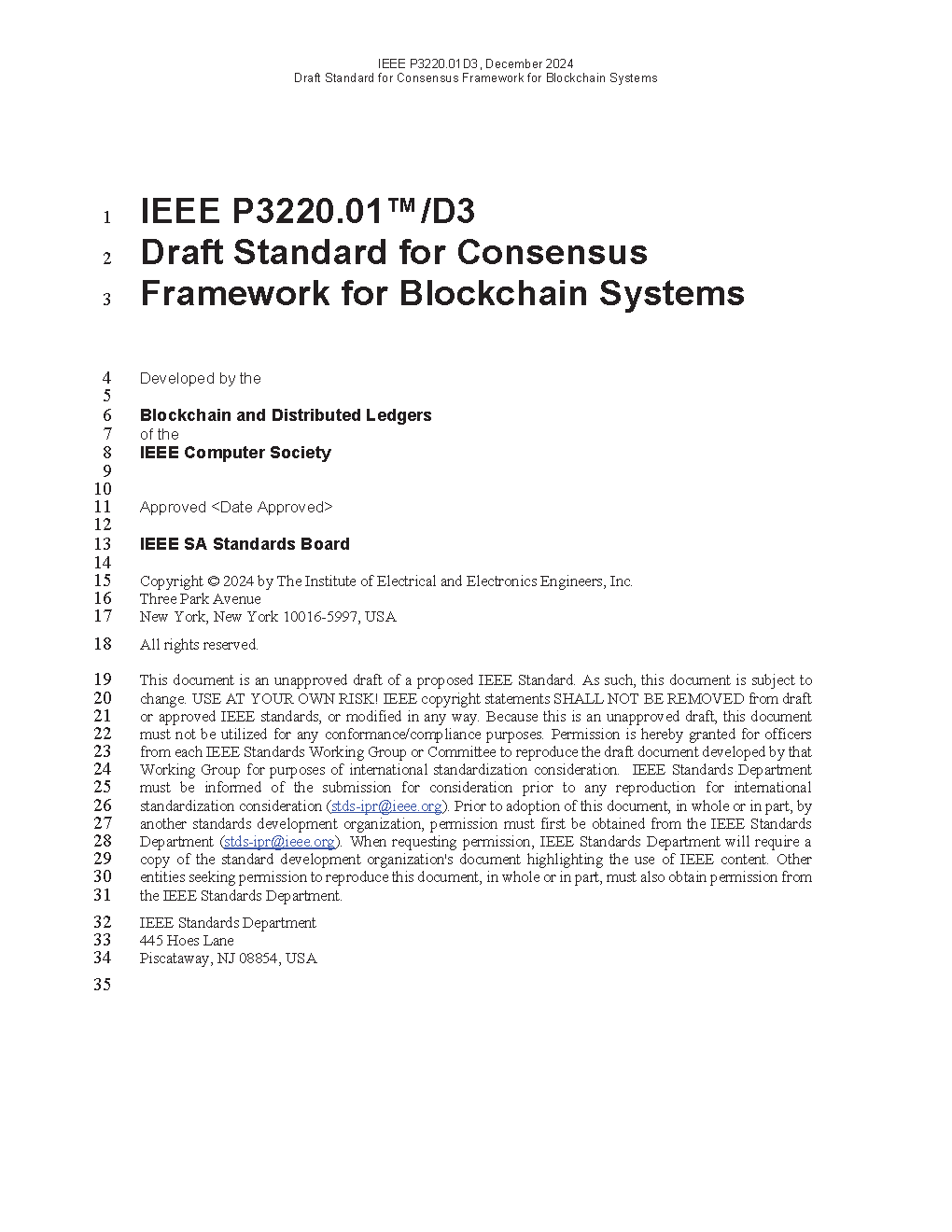 IEEE Draft Standard for Consensus Framework for Blockchain Systems