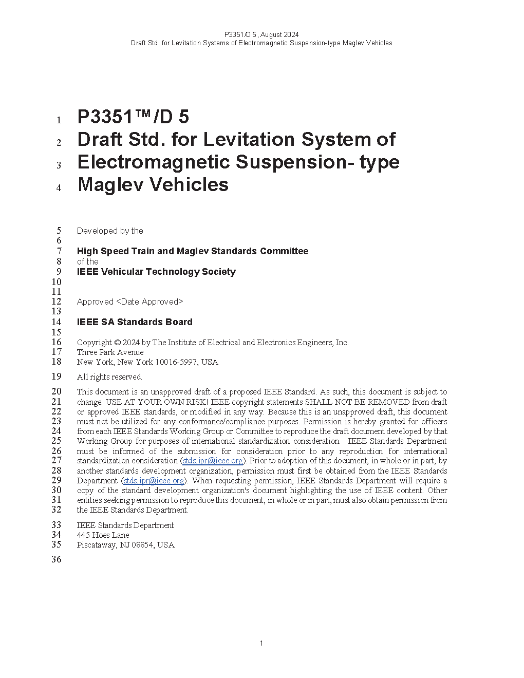 IEEE Draft Standard for Levitation Systems of Electromagnetic Suspension-Type Maglev Vehicles