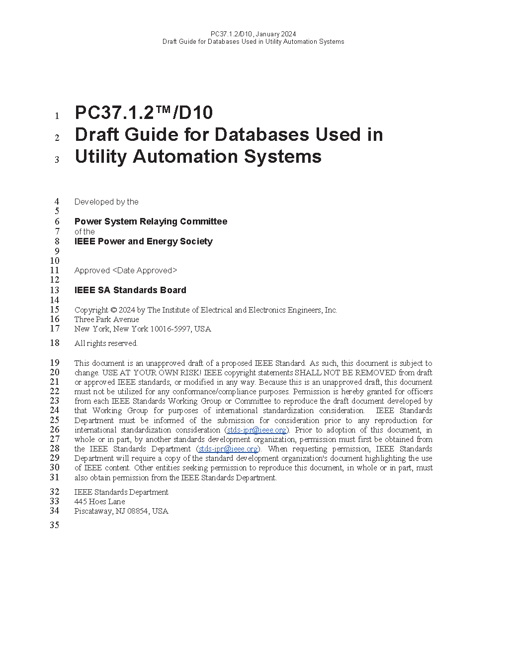 IEEE Draft Guide for Databases Used in Utility Automation Systems
